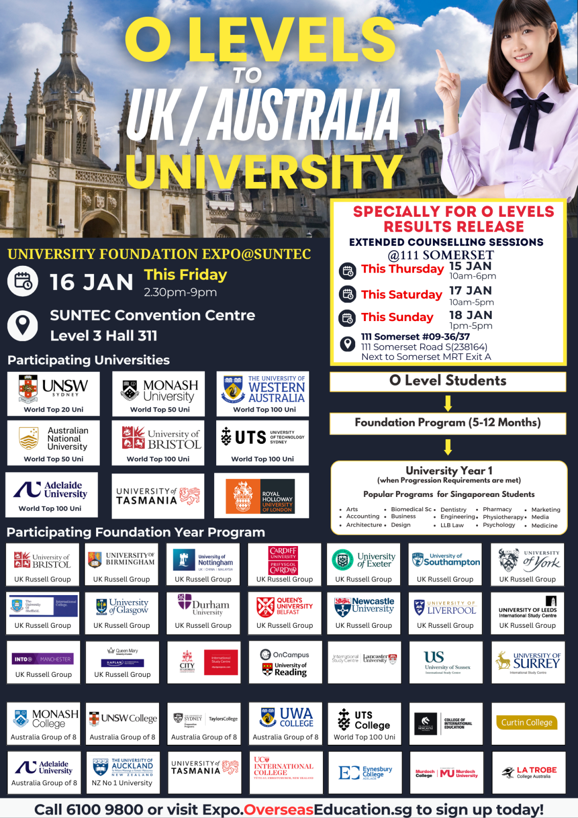 We are one of Singapore leading Overseas Education Consultancy, passionate about helping students fulfill their dreams of studying abroad. Since 2002, we have been appointed by >100 Overseas Institutions including World Top 100 Unis from the UK, Australia, Switzerland, Ireland & USA & helped > 3000 students to study overseas.